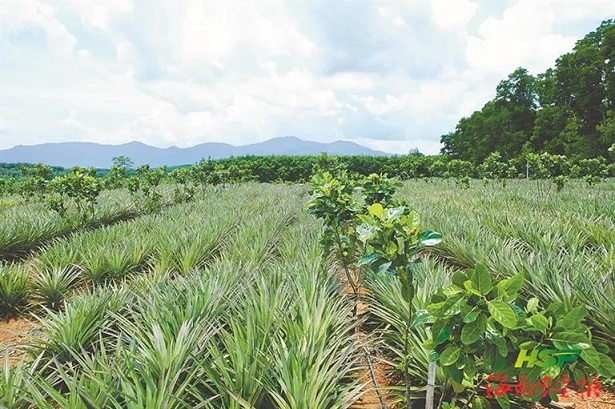 海南橡膠龍江分公司在波羅蜜中間種鳳梨。王明月 攝