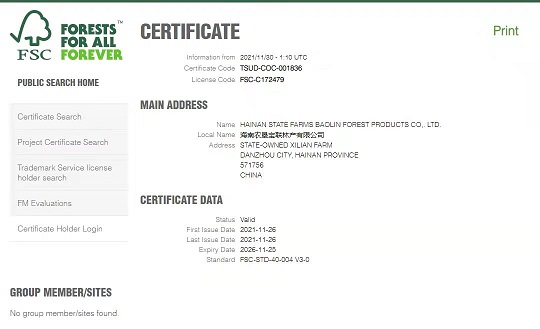喜訊!海墾寶聯林產有限公司獲得FSC-COC產業監管鏈認證證書